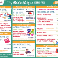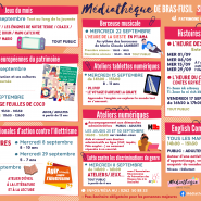 Retrouvez toute la programmation du mois de septembre à la Médiathèque de Bras-fusil !