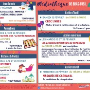 Découvrez le programme de la médiathèque de Bras-Fusil pour le mois de février.