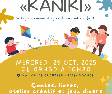 Un joli moment à partager ! Pour les enfants de 3 à 6 ans accompagnés d’un parent, venez vivre une matinée ludique et créative, animée par les médiatrices culturelles. Mercredi 29 octobre 2025 de 9h30 à 10h30 à la maison de quartier de l’Abonda...